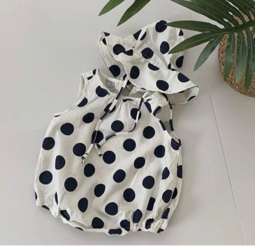 ドット柄の帽子付きロンパース◡̈❤︎